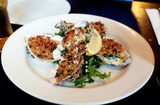 三、材料炒好后,离火加入牛油炒匀,隔油后铺在蚝上,放入焗炉焗15分钟即可。