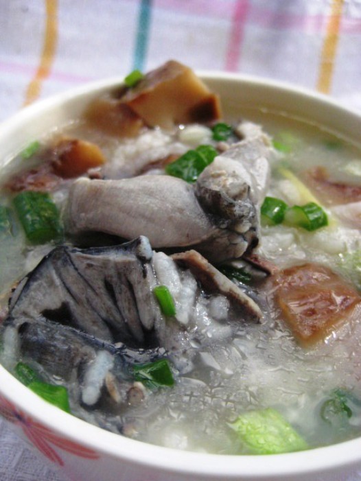 话说某天在一家很出名的粥店喝了碗花菇乌鸡粥,味道好好,我一直记在心里,想什么时候自己也弄碗来喝喝.于是周六早早起床去市场买了只乌鸡,加上家里早就准备好了的花菇,煮了一大锅粥.