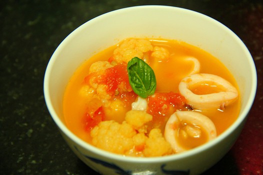 教您花菜西红柿鲜鱿汤的家常做法,怎么做花菜西红柿鲜鱿汤好吃