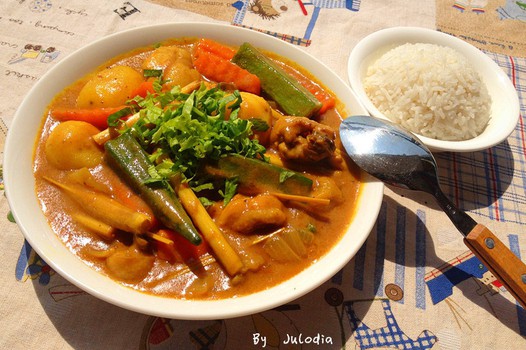 扫饭利器!好多蔬菜~这道咖喱是在越南吃到的~越南的咖喱椰浆味都很浓。加了香茅很有风味~可以试试看~
