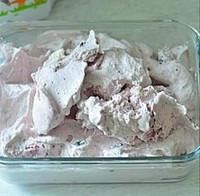 冰淇淋机直接做出的冰淇淋是比较软的口感,如果喜欢比较扎实紧密的,就装入保鲜盒再放入冰箱冷冻2个小时左右