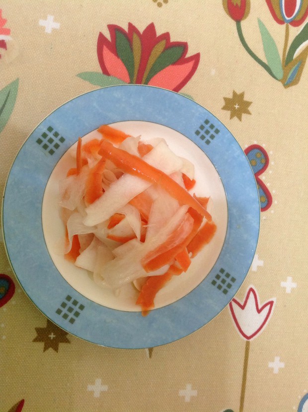 白萝卜洗净,用刮皮刀刮皮待用,可放稍许盐腌制出水