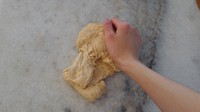 取出排气,分隔成四个面团,盖上湿布静置15分钟(原方是30分钟,但我觉得不需要吧。。)