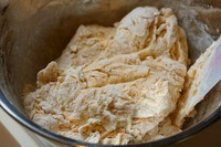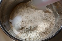 再加入剩下的一半高筋面粉(75g),全麦面粉(50g)和盐