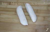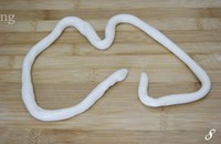 将饧好的面团平均分为四份,搓成长条状(这是其中的一份)