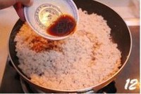 待炒制水分半干的时候,加入特级头鲜酱油,继续不停的翻炒