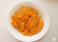 南瓜去皮去籽切薄片,上蒸锅大火蒸约五分钟至熟透,取出放凉后连蒸出来的水一起用搅拌机打成泥;