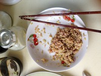 毛豆,笋剁碎加入肉糜料酒,盐,糖调味