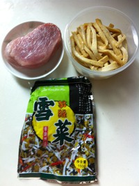首先需要准备好的主要材料就是猪肉,豆干和雪菜。