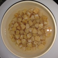 利用煮干贝的时间将配料切好备用,马蹄切成小颗粒