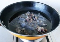 加入鸡块快速翻炒,将鸡块表面煸成金黄色并微微发干