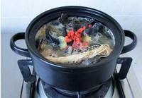 转移到砂锅中,加入适量清水,放入枸杞、生参