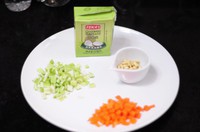 胡萝卜洗净去皮切丁,芹菜洗净切丁,熟米饭打散待用;