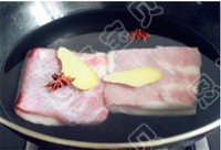 锅中放水,将五花肉块、姜片、八角放入,煮约10分钟左右