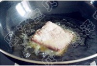 锅中烧热油,将肉皮朝下放入油锅,加盖炸至无声,肉皮上色焦黄