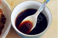 调入适量的蚝油、生抽、老抽、鸡精、料酒、白糖和清水,煮沸关火备用