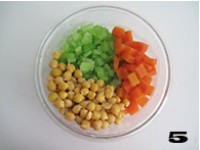 将洗净的胡萝卜和西芹切成与鹰嘴豆大小等同的丁状