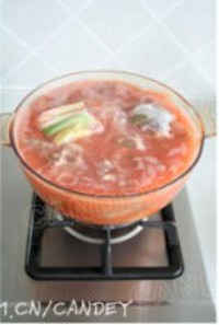盛出腐乳汁备用(不要腐乳,加了腐乳味道就不对了)。将葱姜八角桂皮麦冬香叶放入调料包