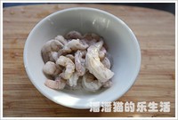 新鲜的海白虾去皮和头,在背部划开,取出沙线,然后放入少量的盐、淀粉、料酒稍微腌制入味