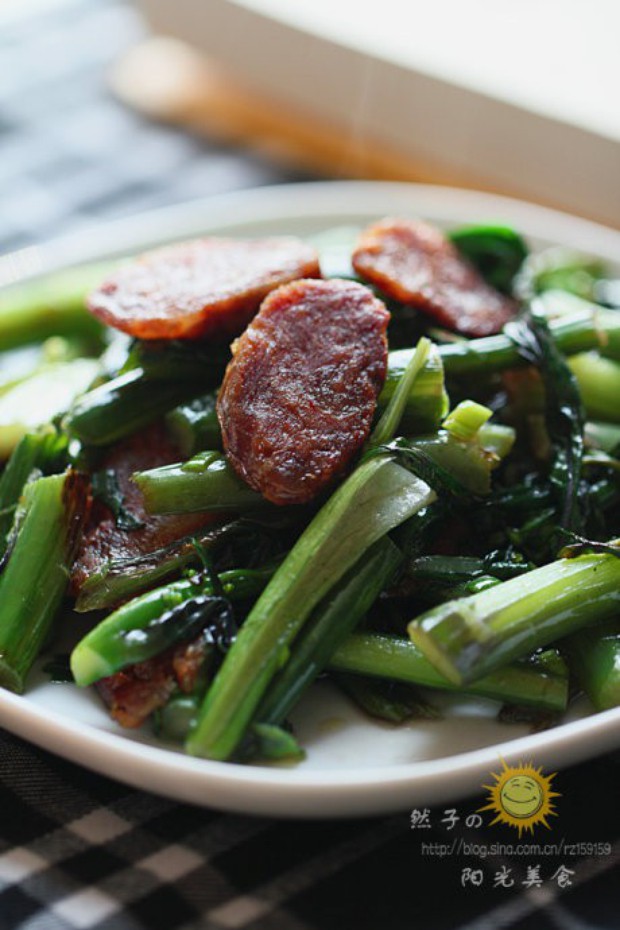 教您红菜薹炒腊香肠的家常做法,怎么做红菜薹炒腊香肠好吃