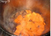 我平时吃肉时喜欢再弄点儿其它的,五十分钟左右加入胡萝卜,胡萝卜和肉搭配,营养更利于吸收啊~~