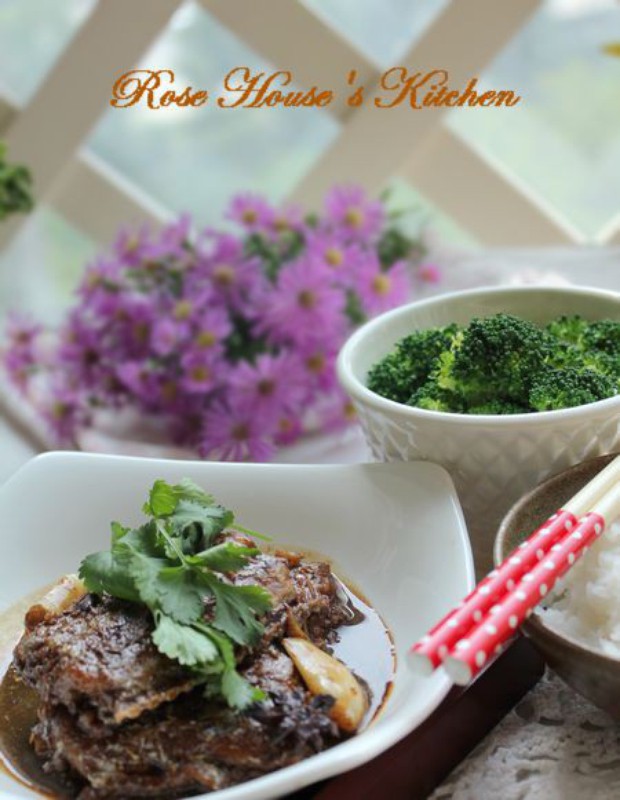 放入酱油、盐、醋、糖和适量的水。开锅后,用小火炖