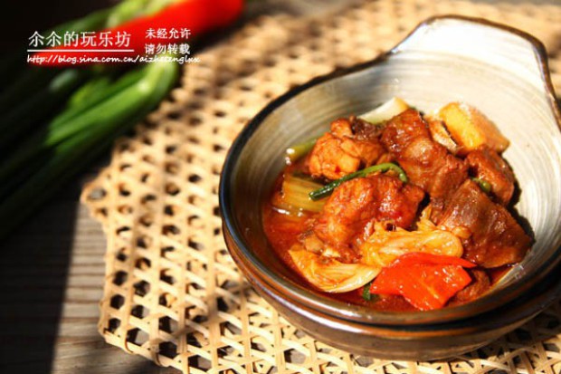 每个人做菜的手法和口味都不相同,这样才能吃出不同的感受和惊喜。相同公式化的出来了就没有太大的意义了,就像M记和K记没办法天天吃,吃多了会烦会腻,因为那是套用规整公式出来的餐品,从组装到扔到前台出售仅需几分钟时间,肉片是公式化定好的口味,炸制时间是定好的,沙拉是调好的,炸鸡腿汉堡永远是炸鸡腿汉煲。最近还好些,都有些新口味上市,我不会说我从来不光顾,偶尔有遇到自己喜欢的我也会去尝尝,但也仅限于浅尝辄止,吃过了就算了。中餐的意义相较西餐会灵活许多,各种菜相搭配,口味上的微调,加勺酱油和加勺醋,出来的味道就不一样了。我喜欢做多种口味尝试,喜欢跳跃的风味,偶有灵光一闪觉得这搭配靠谱,我就想做出来尝尝,诺~~这道泡菜蜜汁山药骨就是咯。蜜汁我用的是叉烧酱,叉烧酱带着甜味,是我比较喜欢的一款调味品,做肉菜调味的时候我会喜欢加一些。这次买了排骨,特意剁得小块些,做个烧小排,搭配的菜下了泡菜,酸酸辣辣的,和叉烧蜜汁一起“融绘”,我家人都接受得来,我娘说蛮好吃的,不晓得大家会不会喜欢呢?山药的加入比较鬼马,因为最近市场上山药挺多的,这玩意吃起来对身体好,所以加到菜里一起“烧”一下,借一借排骨和蜜汁汤的味道,吃起来也比炒着要入味许多。