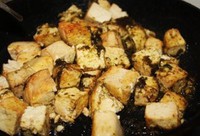 2. 锅里放油烧热,把豆腐放里面翻两个个