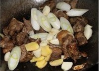 加入京葱,姜片,蒜瓣,花椒,辣椒干干等等同炒到香味出来