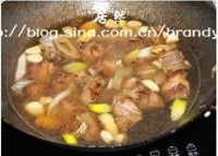 然后入锅焯水,锅里放京葱,姜片同煮,白酒