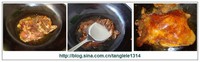 鸡腿去骨,把筋划断。用刀拍几下,再用牙签在鸡皮上扎洞,鸡腿用腌料腌至一小时或更长时间入味