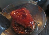 七、汁收到一定程度,将剔骨的肘子捞出,加入适量水淀粉勾芡,再将芡汁浇淋在肘子上。