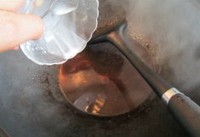 三、炒糖色,用冰糖开小火,让它慢慢的融化,直至变为棕色并冒气泡;