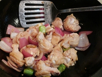 将鸡肉下锅,翻炒至鸡肉变色