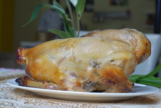 均匀涂抹在鸡的内腔和外皮,沙姜放入内脏。