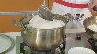 热锅下盐,把粗盐倒入锅中大火炒热至有啪啪响声。