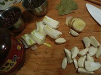 起净锅,入少许油,三成热时下葱姜蒜煸香