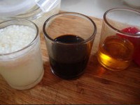 焯水之后重新干净待用,准备米酒、麻油、酱油,姜片、葱结