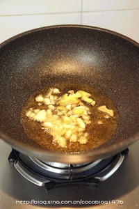 将第一杯油倒入锅里,爆香蒜片和姜片。