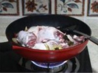 6. 鸭肉和其他材料一并倒入砂锅中,加入水