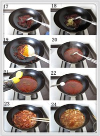 17、再次起锅,加入2大勺油,小火爆香2大勺豆瓣酱;18、加入姜末和一半蒜末,继续小火煸炒;19、煸炒至出红油;20、加入适量开水21、加入生抽;22、加入糖;23、沸腾后,逐片快速下入牛肉片;24、煮至肉片均匀变白色;