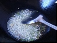 5. 热锅冷油倒入姜蒜末煸炒