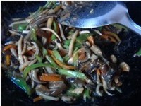 6. 倒入鳝丝煸炒