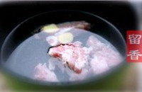 锅里水开后,将大排骨放入加黄酒先炖煮出浓汤,然后将黑木耳、山药、胡萝卜放入同煮开
