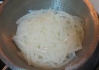 将刨好的山药丝泡在水中备用