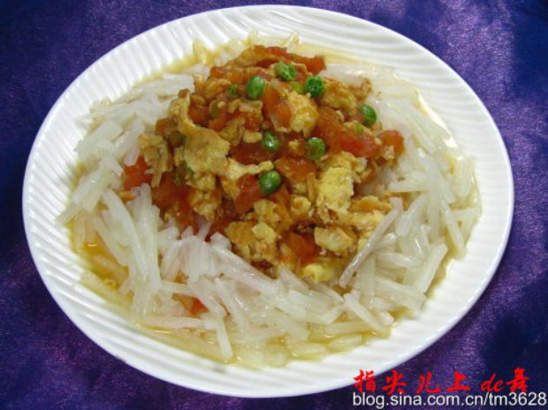 冬天的火锅大行其道,还没吃几次火锅,就感觉自己上火啦。看来还是不能太马虎(因为做起火锅来相对还是简单些),平时有时间还是炒些素菜吧。这不,看到现在市场上山药很新鲜且也便宜,就买了点回来。山药因其营养丰富,具有健脾益胃、助消化,滋肾益精,益肺止咳,降低血糖,延年益寿,自古以来就被视为物美价廉的补虚佳品,既可作主粮,又可作蔬菜,还可以制成糖葫芦之类的小吃。但买回的山药已经不敢做汤了,就想着要换个方法吃,山药泥,太甜;素炒,没新意。。。终于让我琢磨出将它作为主食,使其形似面条,再浇上酸甜开胃的番茄鸡蛋卤,来碗另类的中西合璧“打卤面”,绝对让您HOLD不住,而且也利于我的减肥大业,哈哈,“一箭双雕”。提醒注意的是,新鲜山药切开时会有黏液,极易滑刀伤手,可以先用清水加少许醋洗,这样可减少黏液,药切片后需立即浸泡在盐水中,以防止氧化发黑。