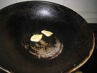 锅中下底油烧热,先爆香一下姜片;