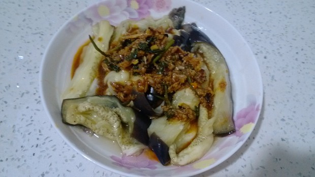 1. 将茄子切成厚片,放入笼屉蒸10分钟左右。