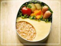 1. 把事先炒好的番茄酱炒饭如图装进便当盒里