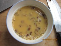热水变成温水,香菇也发起来了,然后直接在这个温香菇水里面打上鸡蛋